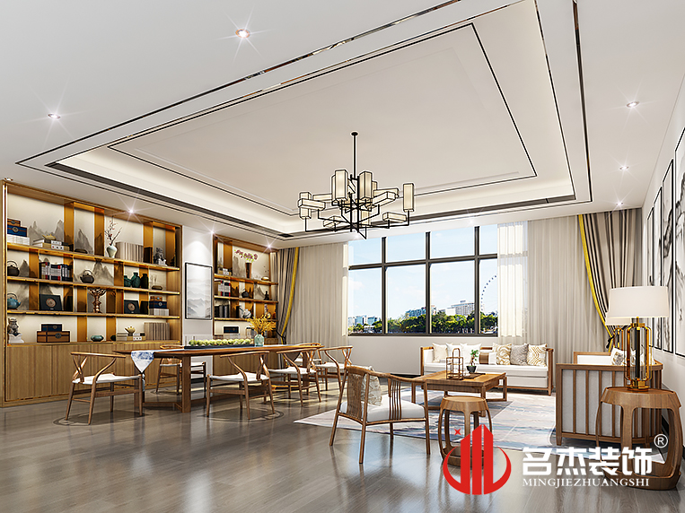 本案例是以辦公和服裝展示為主的服裝公司,設計師從眾多設計元素中挑選了較為流行的服裝設計元素,加入到設計當中。同時也根據(jù)實際情況,在吊頂設計部分采用了有造型的燈具,而且在前臺設計部分也采用了流行的弧形元素,增加整體設計感。