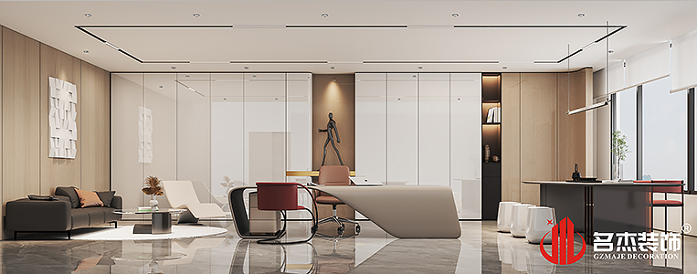 這次是一家以國內(nèi)貿(mào)易代理;電子產(chǎn)品銷售;體育用品及器材批發(fā)的家具服飾企業(yè)。設(shè)計(jì)師通過對該服飾行業(yè)的了解,以及從客戶需求出發(fā),以時(shí)尚輕奢風(fēng)格來打造這個(gè)辦公裝修設(shè)計(jì)空間。在空間多處使用圓弧形元素來搭配出更多的設(shè)計(jì)感,加上線條燈的巧妙使用,讓空間的層次感得到強(qiáng)化。