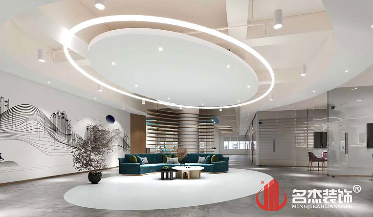 本案例是以辦公、展廳和休閑結合的服裝公司。設計師從時下流行的蒂芙尼藍入手,使用相搭配的顏色和相近的顏色來進行搭配。同時結合業主的想法和整體戶型來著手設計,用柔和的線條來突出服裝公司美。