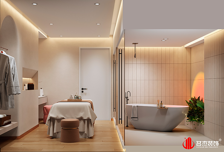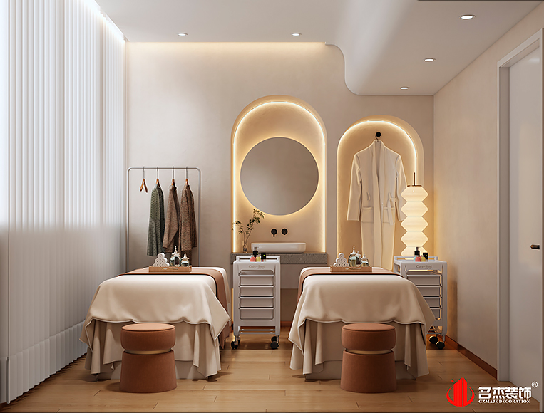 奶油風格融入到現代輕奢的風格里,也讓空間散發出不一樣的特色,更符合現代流行的趨勢。設計團隊也在整體空間中加入一些造型,增加空間的利用率的同時,也讓空間有了更好的設計層次感。同時在燈光的運用上面,也是參考到現在流行的方式,運用大量的燈光來營造出一種氛圍感,讓更多的人更愿意留在這個空間,進行打卡拍照#美容裝修設計#