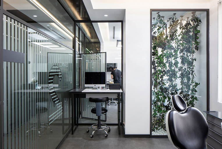 極簡卻不簡單的風格,全程用和白色調和線性打造極簡造就寬敞,由于診所檢查室和消毒室的緊密結合,房間隔板之間放置的玻璃和植物使整個空間看起來更加寬敞透明。憑借這種透明的外觀,診所的房間更加寬敞,可以提供更廣闊的視野。由于這個原因,這些房間顯得更有深度。