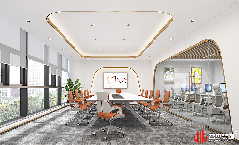 在整個(gè)的辦公室裝修設(shè)計(jì)當(dāng)中,主要的空間采用土豪金和活力橙作為空間的點(diǎn)綴色,讓空間的設(shè)計(jì)感層層遞進(jìn)。同時(shí)時(shí)尚流行的風(fēng)格是非常符合化妝品這個(gè)行業(yè)的,能夠重點(diǎn)突出產(chǎn)品的特點(diǎn)以及特色,使得產(chǎn)品變得更加吸引人。