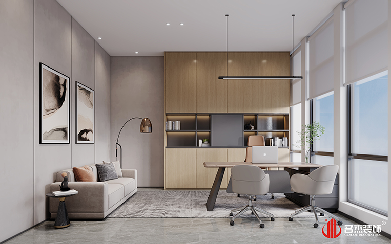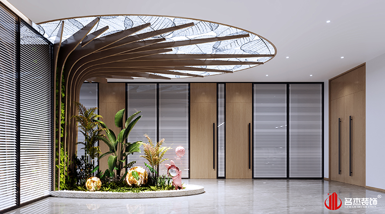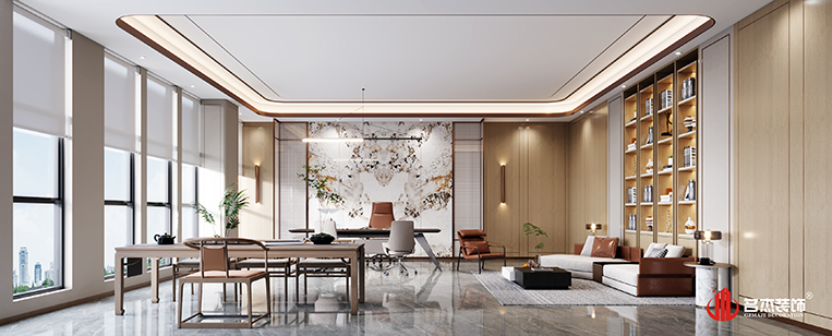 為了打造一個既時尚又具有企業氛圍的空間,設計團隊運用了輕奢的元素。通過精心挑選了材料和色彩,以確??臻g的品質和舒適度。在重點區域,加入了土豪金的元素作為點綴,為空間增添了一絲奢華感。通過運用輕奢元素、土豪金點綴以及運用線條作為引導空間的要素,打造出一個讓人印象深刻的辦公裝修設計空間。#廣州辦公室裝修#