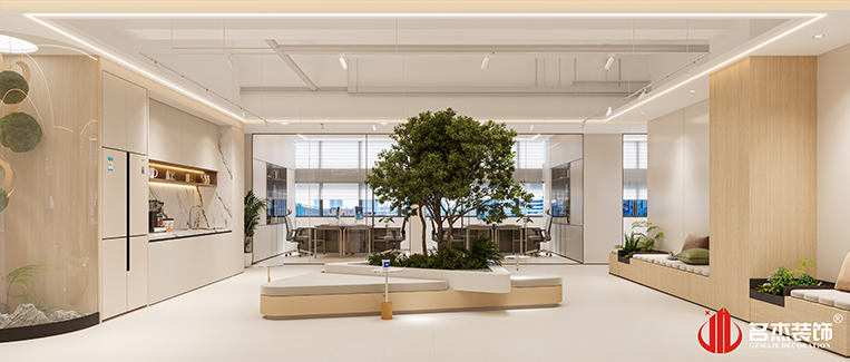 設(shè)計(jì)團(tuán)隊(duì)在整體辦公室裝修設(shè)計(jì)空間中多次使用弧形元素,讓空間充滿著更多的設(shè)計(jì)層次感。同時(shí)根據(jù)客戶的行業(yè)定位,在空間中引入一整顆綠植,讓空間充斥著綠植的元素,也帶來更多大自然的氣息。#廣州辦公室裝修#