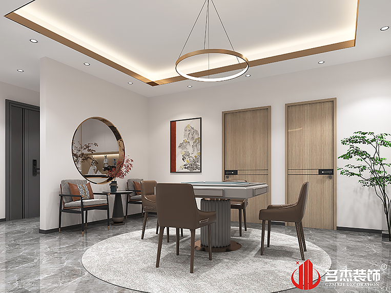 前臺區(qū)域使用有規(guī)律的線條和弧形元素進(jìn)行混搭,創(chuàng)造出一種強烈的時尚感,而這樣方式也出現(xiàn)在茶室上面,通過不規(guī)則的設(shè)計手法,輔以燈帶作為裝飾點綴,展示出該企業(yè)想要突破傳統(tǒng)的想法。同時空間設(shè)計中,對于金色的使用,也是較為大膽的,多個區(qū)域中都使用到,運用恰到好處,讓空間有種輕奢的氛圍。