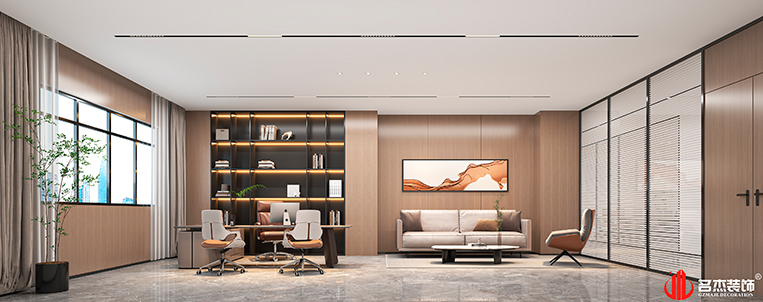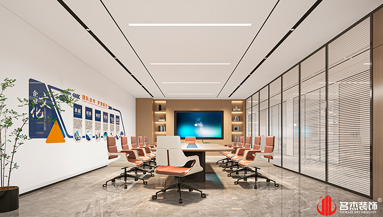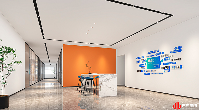 時尚簡約風格為這次的主打風格,同時加入活力橙作為空間的點綴色,讓其空間與市面流行的辦公裝修設計空間有著明顯的區(qū)別。活力橙的加入也能為空間注入更多的活力元素,使其空間變得更加有趣。#廣州辦公室裝修設計#