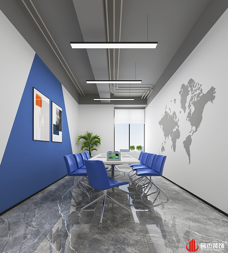 時尚簡約風格是市面上較為常用的一種風格,也會讓大部分辦公室裝修設計空間看起來千篇一律,因此設計團隊采用將該企業的VI色系加入到整體辦公裝修設計空間當中,突出企業的文化,同時還能夠將代表科技的藍色融入到空間中,讓這個時尚簡約風格的空間有了不同于市面上的辦公室裝修設計空間。#廣州辦公室裝修設計公司#