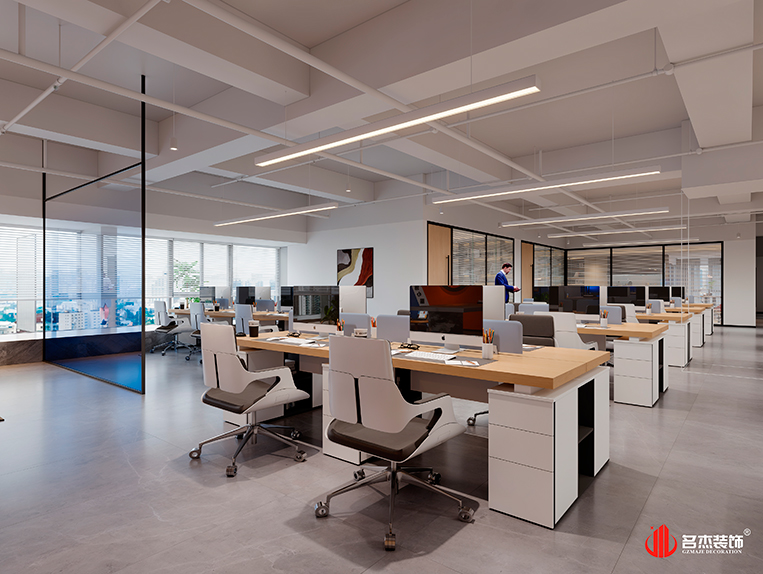 設計團隊雖然說采用時尚簡約風格來作為這次的主導設計風格,但也汲取其他風格的特色,將這些元素特色融入到這個辦公室裝修設計空間當中。多個空間使用碳晶板來作為空間的點綴材料,讓空間充斥著不同以往的氛圍,營造出一種充滿干勁的空間氛圍感。#廣州辦公室裝修設計公司#