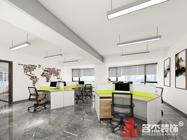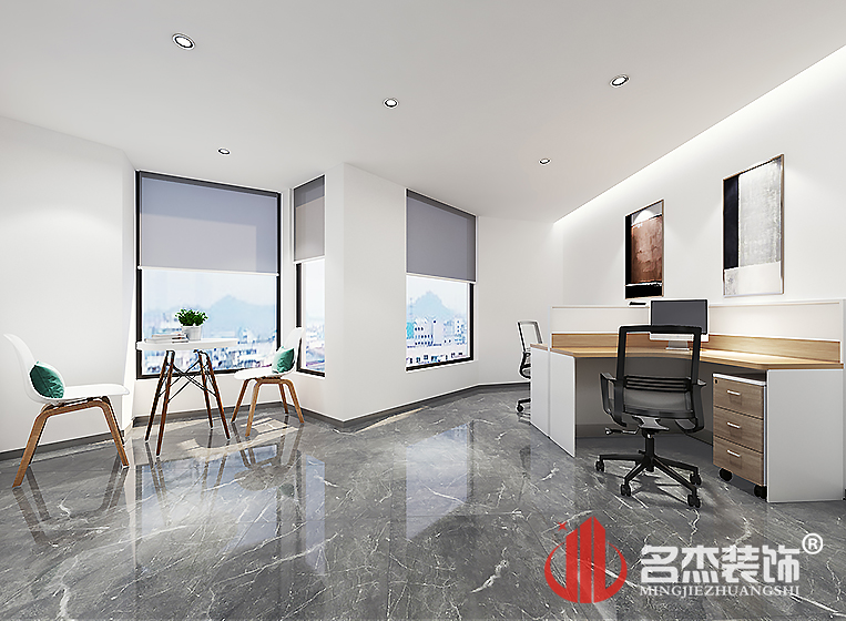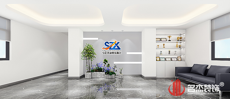 前臺部分加入綠植作為點綴整體空間的重要元素,讓人一進門就能感受到大自然的氣息。辦公裝修空間恰到好處的加入了綠色,來給整個空間增加更多的自然元素,也讓整個空間充滿活力的氛圍。